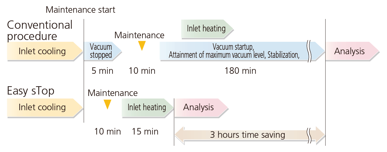 具備Easy sTop Function 減少儀器維護時間,當長時間大量樣品分析,需求更換注射端口耗材 Septa 及 Liner 可不須洩真空直接更換,並具軟體導向操作,節省儀器維護時間。