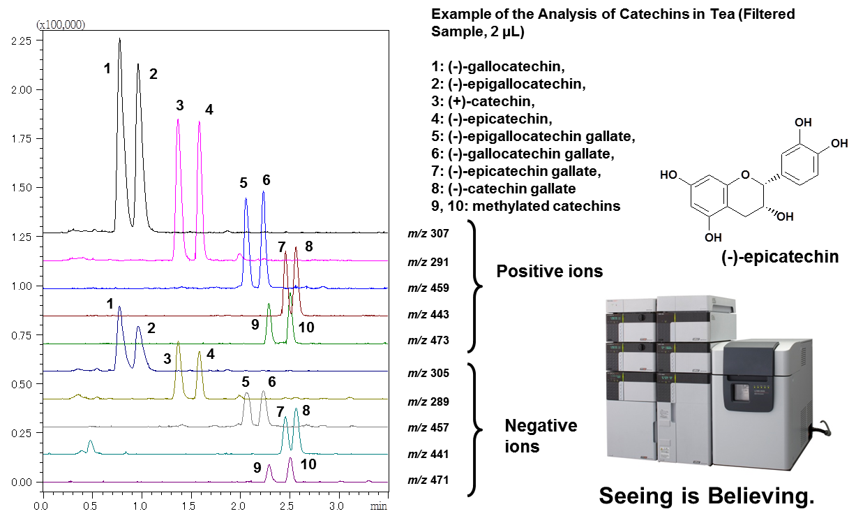 ►結合Ufscanning & Ufswitching 技術實現在UHPLC系統上快速檢測兒茶素化合物,提供高靈敏度及定量精確度。